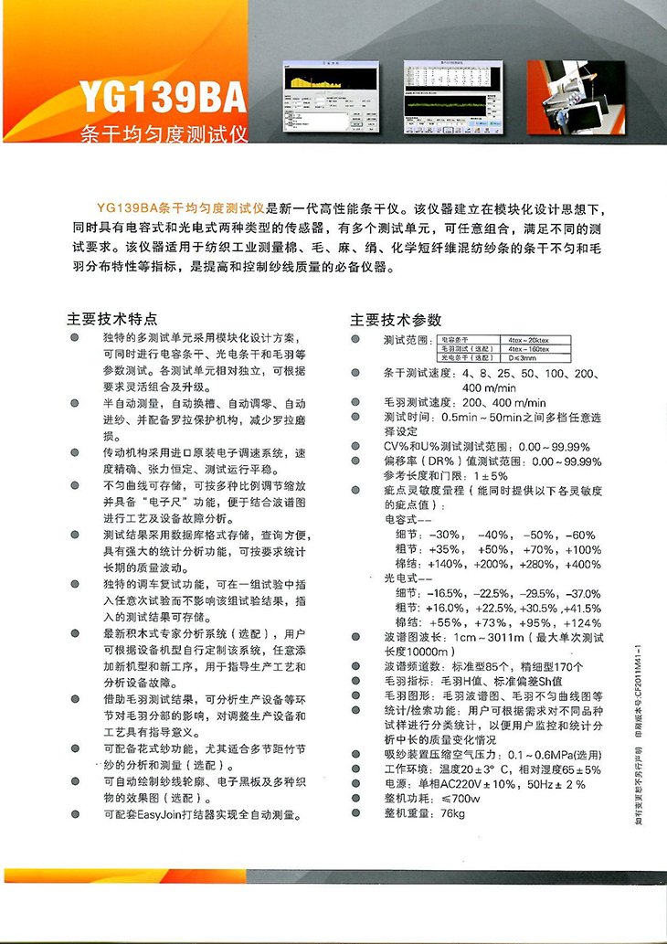 產(chǎn)品名稱(chēng): YG139BA 條干均勻度測(cè)試儀